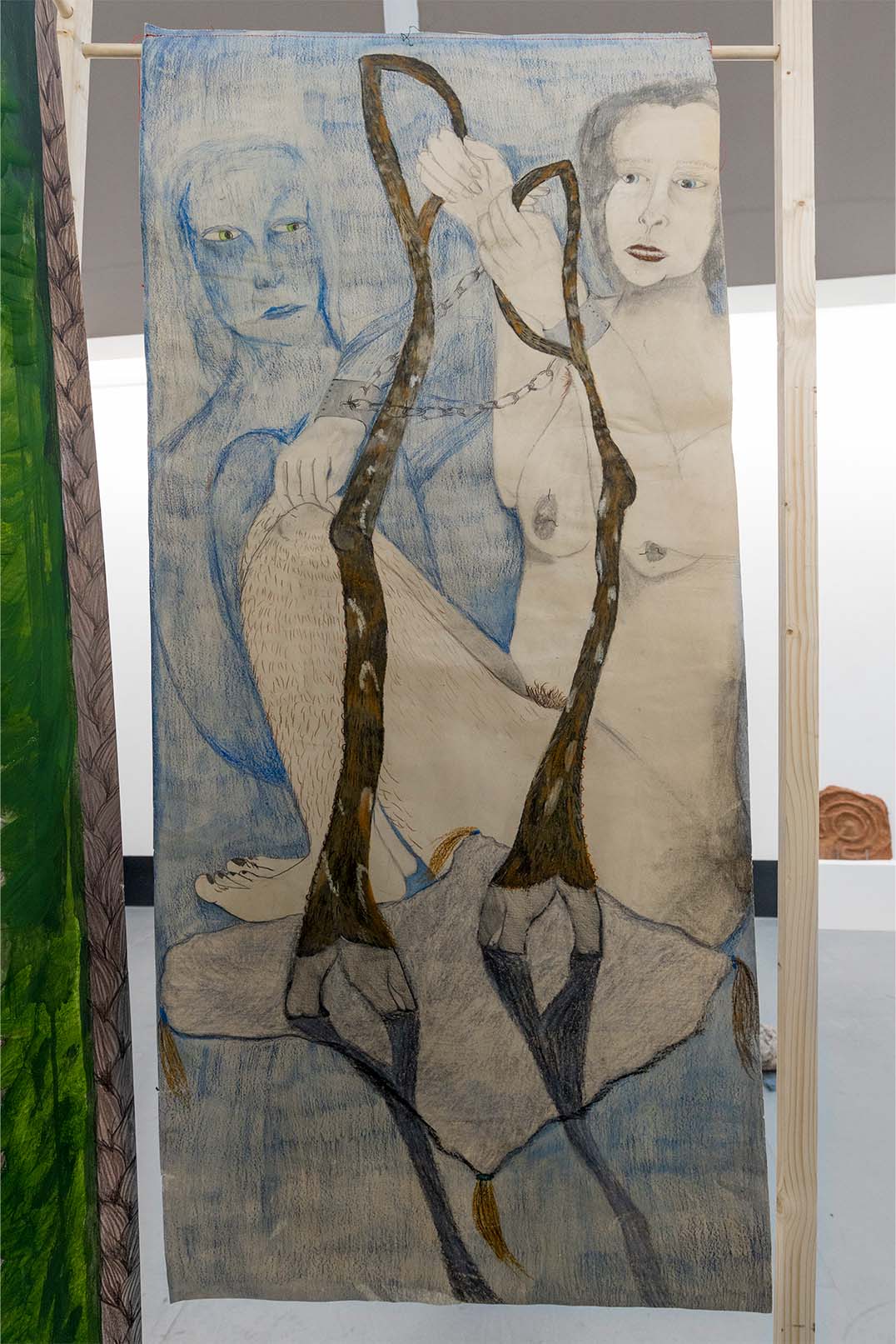 Bethany Stead is an artist working between drawing, painting, sculpture and textiles, interested in materials that are historically associated with class, gender and sexuality. She uses clay, wood, fabric and paper to generate conversations, visual stories, and forms of escapism in response to social and societal barriers.