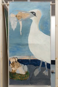 Drawings and sculptures stand as characters residing within imagined, unsettling or idyllic spaces. Metamorphic, animalistic and anthropomorphic, Stead attempts to explore the discomfort and awkwardness of inhabiting a body, the history of bodily health, the human connection to clothing and costume, worship and religion, and our relationship with the non-human sphere. Symbolism and archetypes thread through her work, influenced by intergenerational storytelling and personal writing as a form of therapy, looking at psychoanalysis, animism, magical realism and folklore.