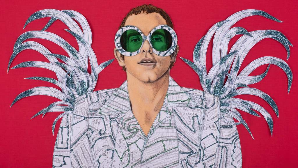 Jane Sanders, Portrait of Elton John & Portrait of Kit Williams, Textile & mixed media