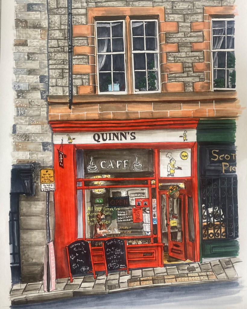 Mollie Turner, Quinn’s cafe, Edinburgh, Ink and alcohol marker