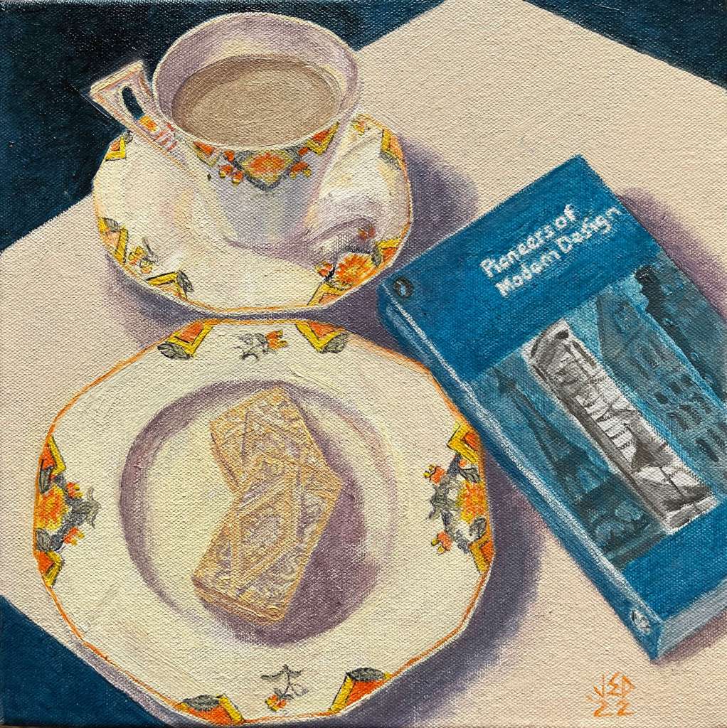 Janet E Davis, Tea break [a study in art history], Watersoluble oils on canvas