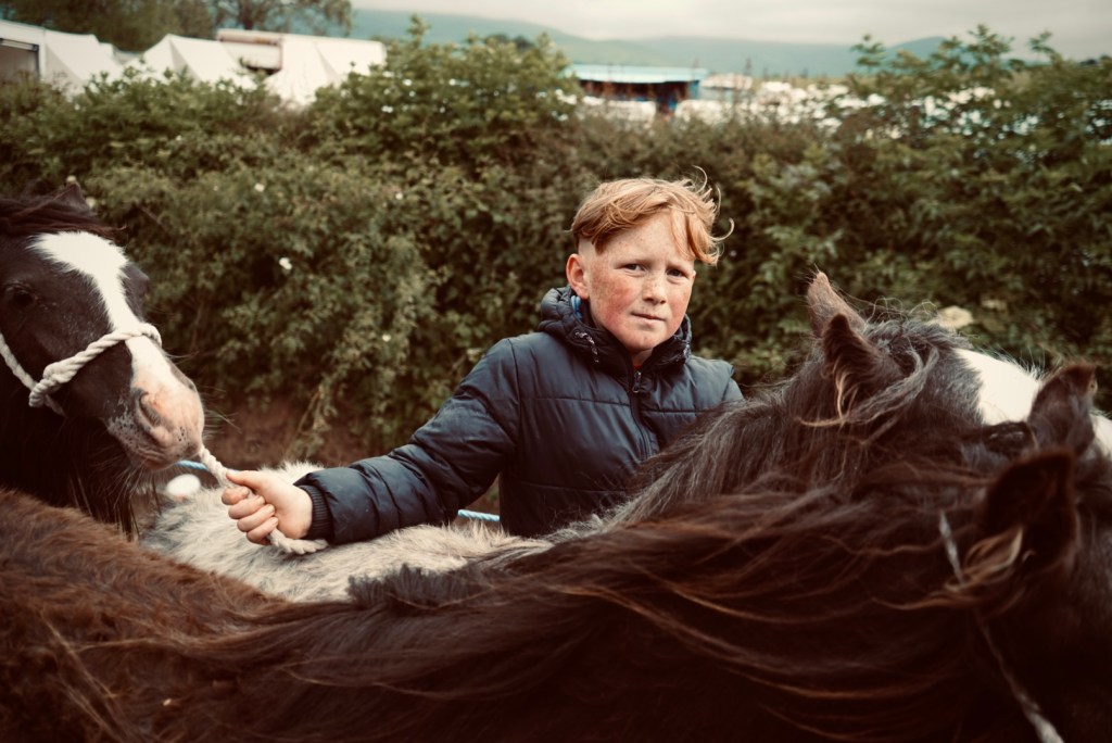 Debbie Todd, Young man with his ponies on the flashing lane at Appleby Horse Fair, Photograph
